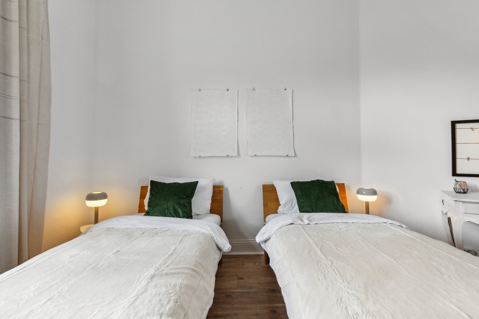 Du wachst in einem luxuriösen King Size Bett auf und startest erfrischt in den Tag. Im zweiten Schlafzimmer findest Du zwei flexible Einzelbetten, die nach Bedarf zusammen geschoben werden können. Im Wohnzimmer entspannst Du auf der Schlafcouch (180x200 cm) und genießt deinen Lieblingsfilm auf dem Smart TV. Mit Schlafplätzen für bis zu 6 Personen und einem großen Esstisch für gesellige Abendessen ist genug Platz für alle.