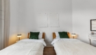 Die Wohnung bietet Platz für bis zu 6 Personen: zwei Kingsize-Betten in den Schlafzimmern und eine ausziehbare Couch auf 160x200 cm im Wohnzimmer.