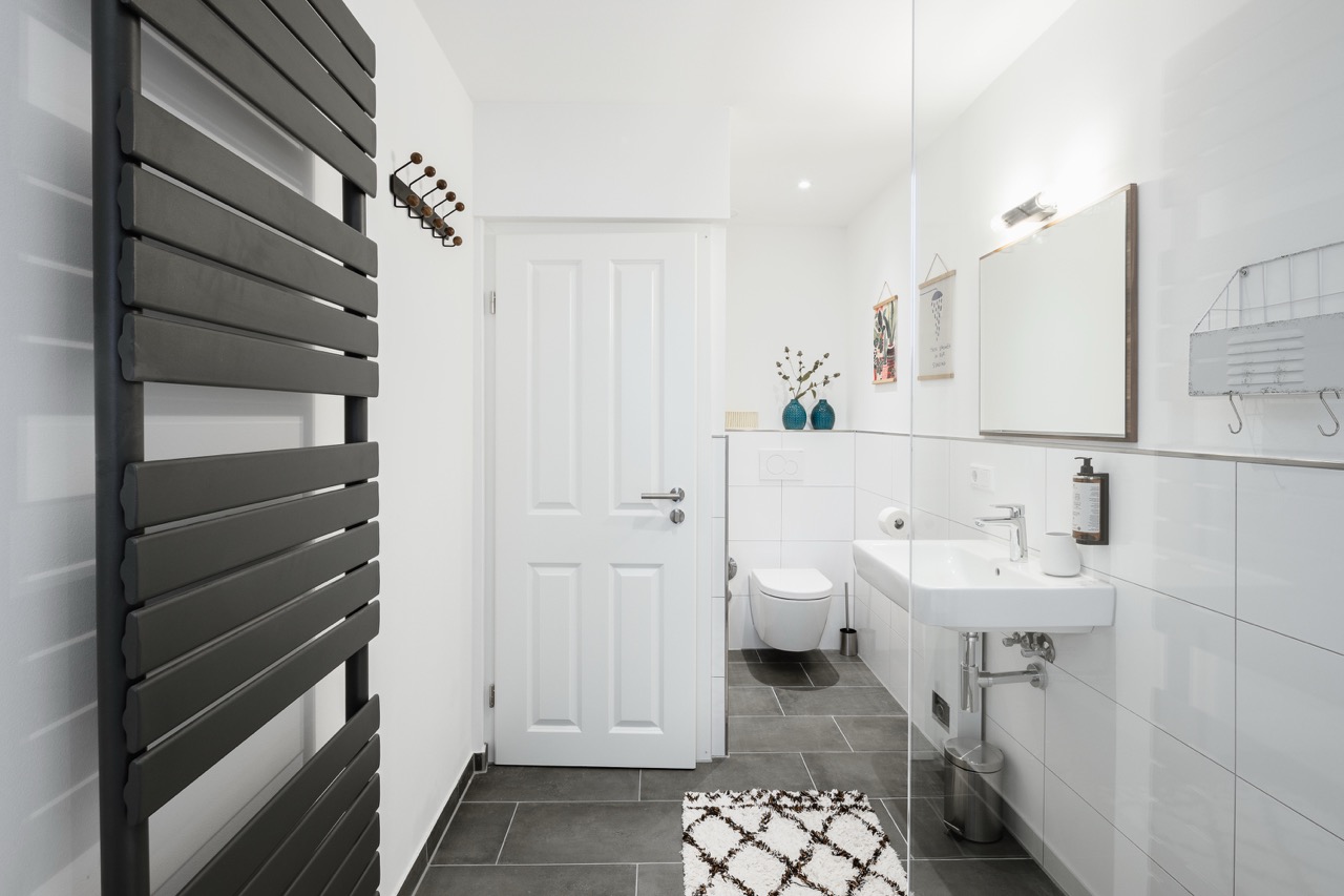 Nach einem erlebnisreichen Tag kannst du dich im modernen Badezimmer erfrischen. Dank kostenfreiem WLAN bleibst Du immer verbunden. Die Waschmaschine und der Trockner sorgen für frische Kleidung. Ein Bügeleisen und Bügelbrett stehen ebenfalls bereit.