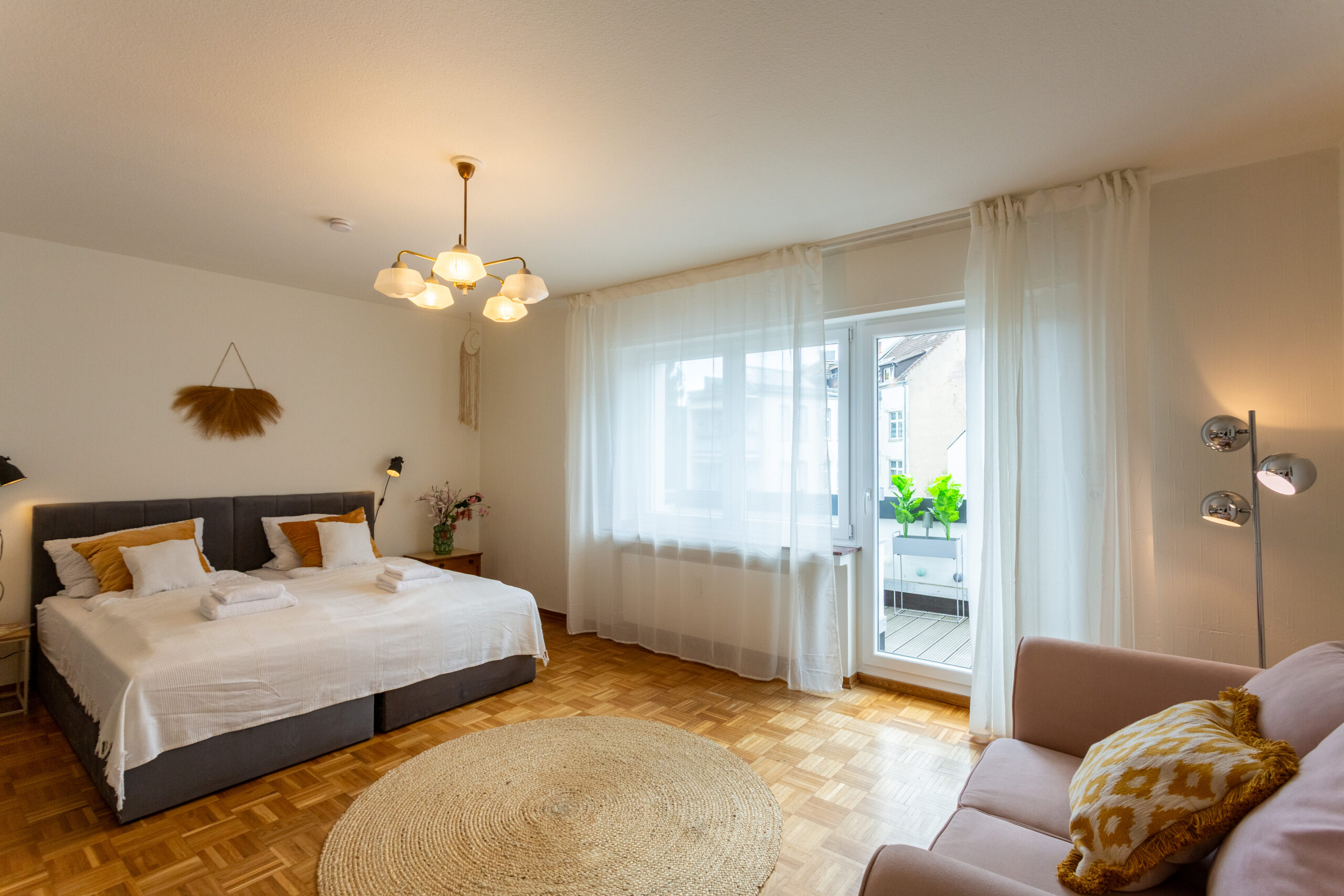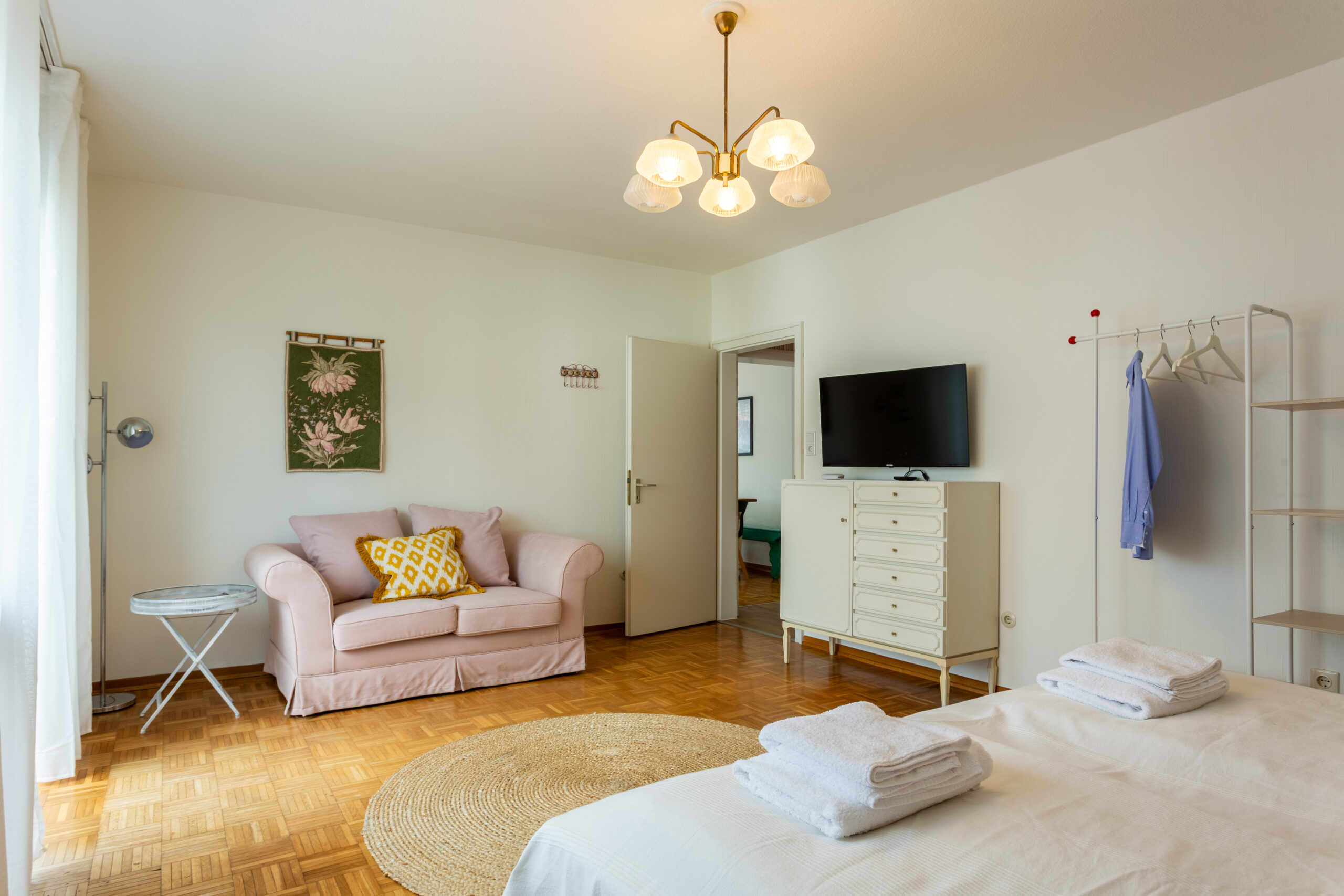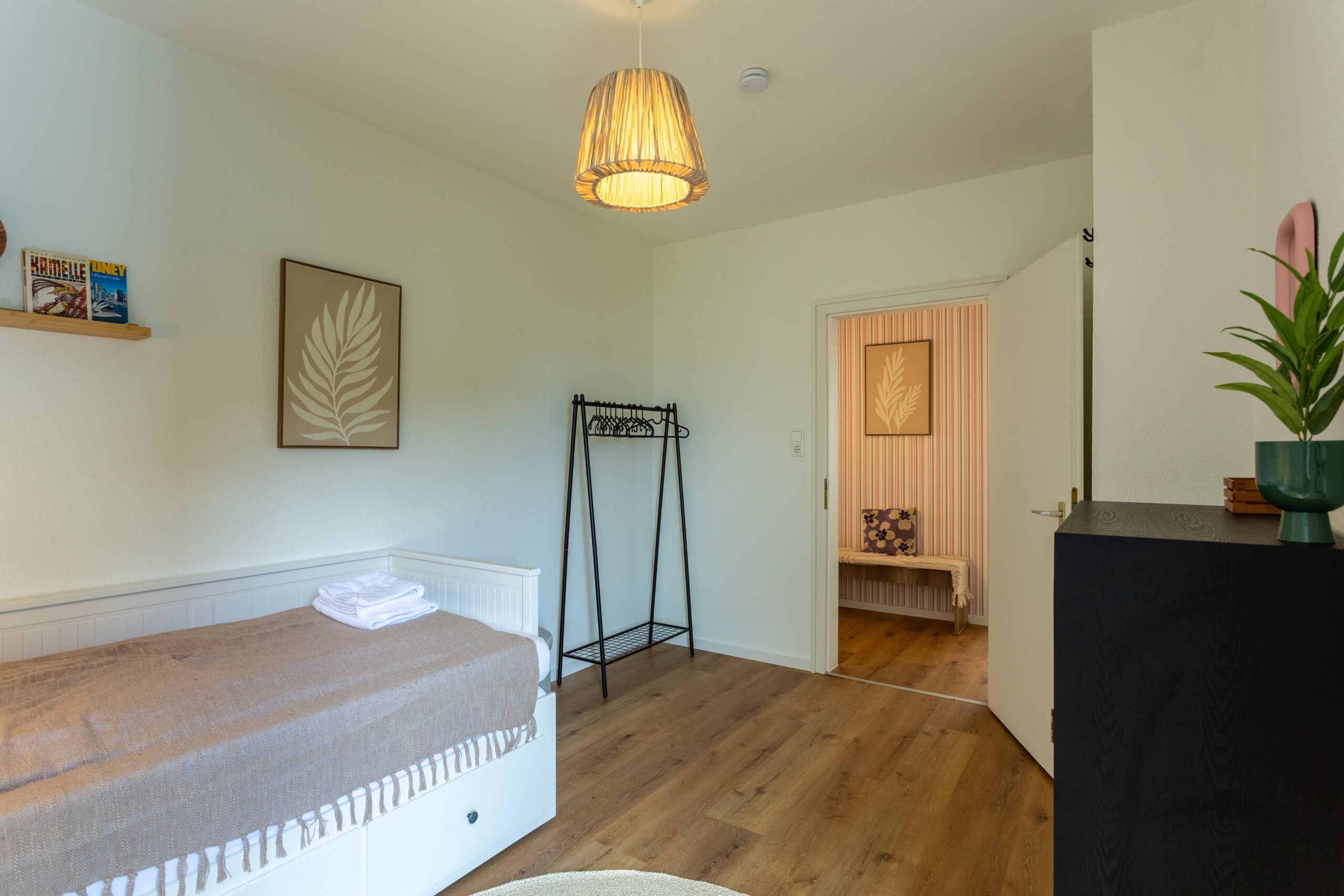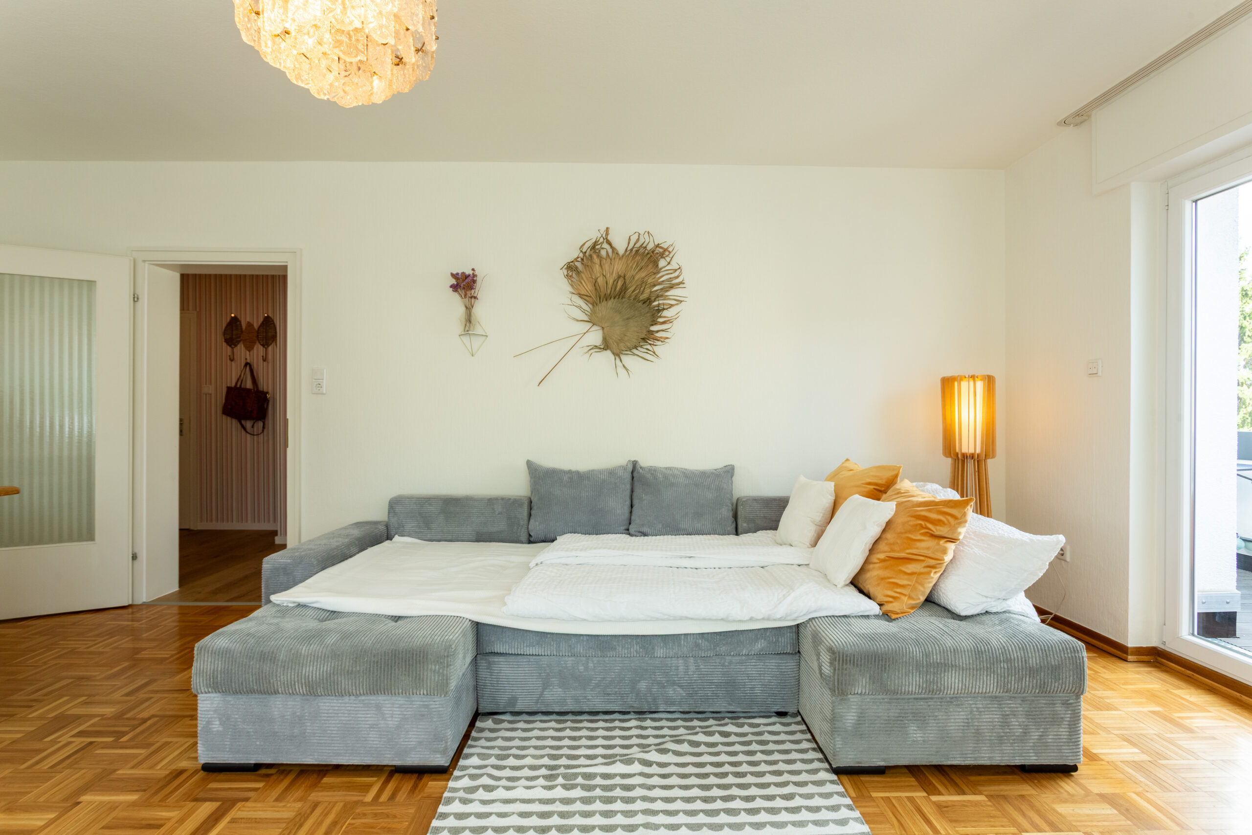 Die Wohnung ist hell, großzügig geschnitten und bietet durch flexible Betten, zwei Balkone und durchdachte Ausstattung alles, was du für einen entspannten Aufenthalt brauchst – egal ob mit Familie, Freunden oder als Gruppe von Kollegen.