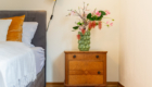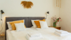 Du wachst in einem komfortablen King Size Bett (180 cm, teilbar in zwei Einzelbetten) auf und startest erfrischt in den Tag. Im zweiten Schlafzimmer erwartet dich ein gemütliches Queensize-Bett (160 cm, ebenfalls teilbar in zwei Einzelbetten) mit Zugang zum kleinen Balkon – perfekt für den ersten Kaffee am Morgen. Das dritte Schlafzimmer bietet ein praktisches Ausziehbett, das von 90 cm auf 180 cm erweitert werden kann, während im Wohnzimmer eine Schlafcouch mit 120 cm Breite für bis zu zwei Gäste bereitsteht. So finden bis zu 8 Personen bequem Platz.