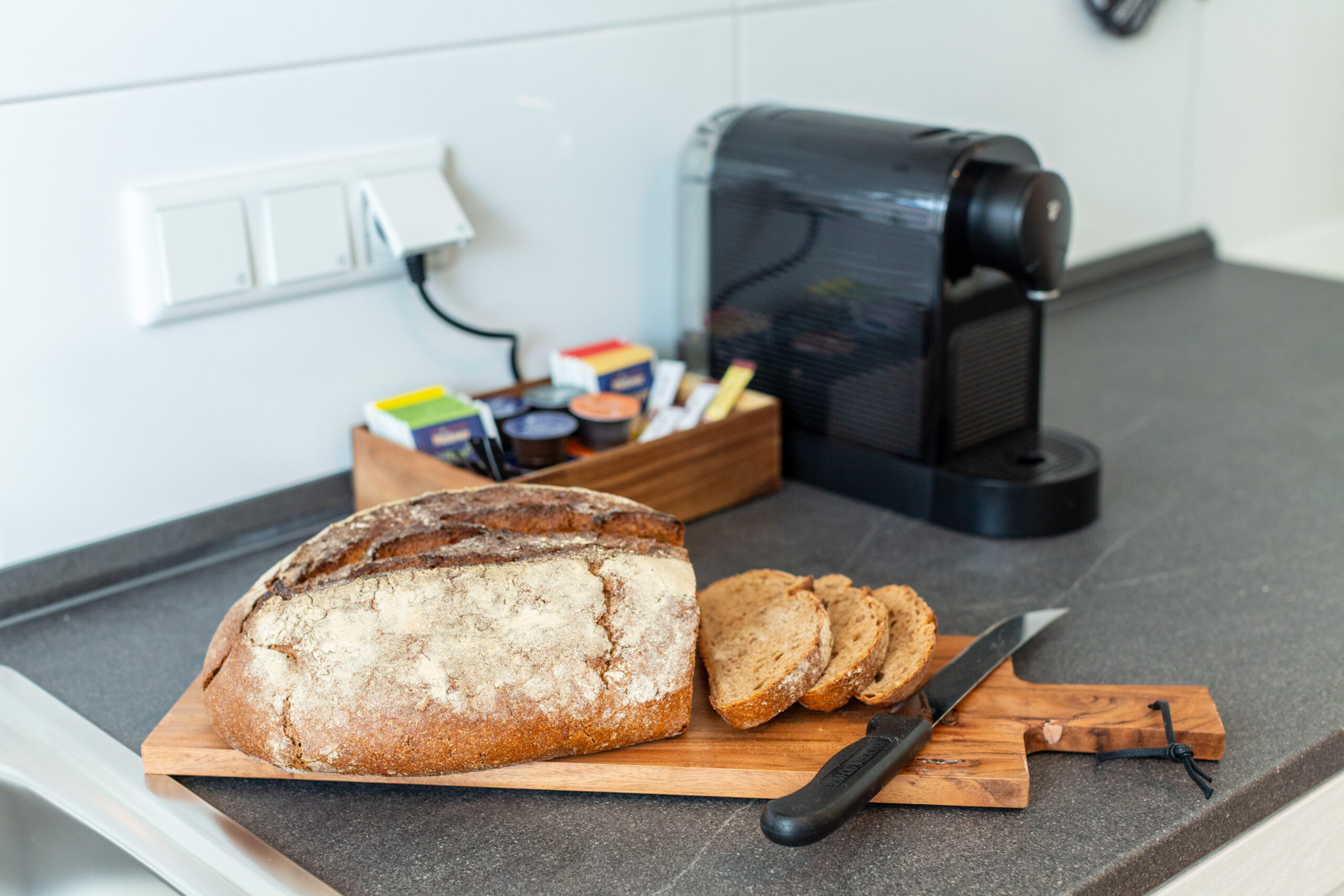 In der voll ausgestatteten Küche bereitest du mühelos Mahlzeiten für die ganze Gruppe zu. Backofen, Herd, Spülmaschine, Kühlschrank mit Gefrierfach, Toaster, Wasserkocher und Kaffeemaschine sind vorhanden – hier fehlt es an nichts.