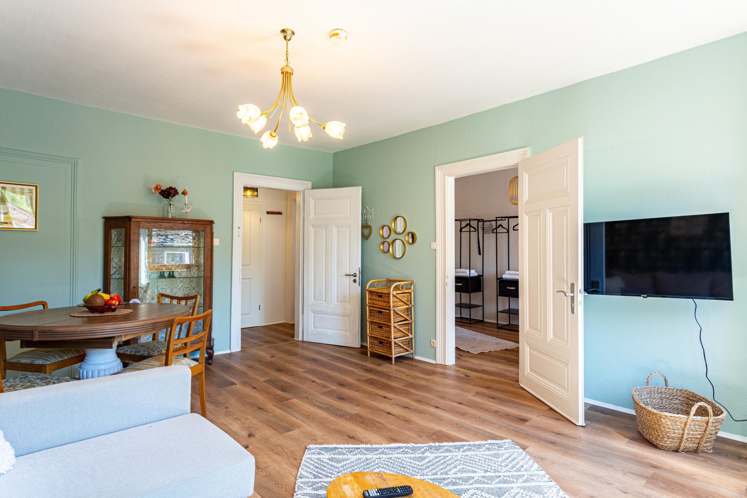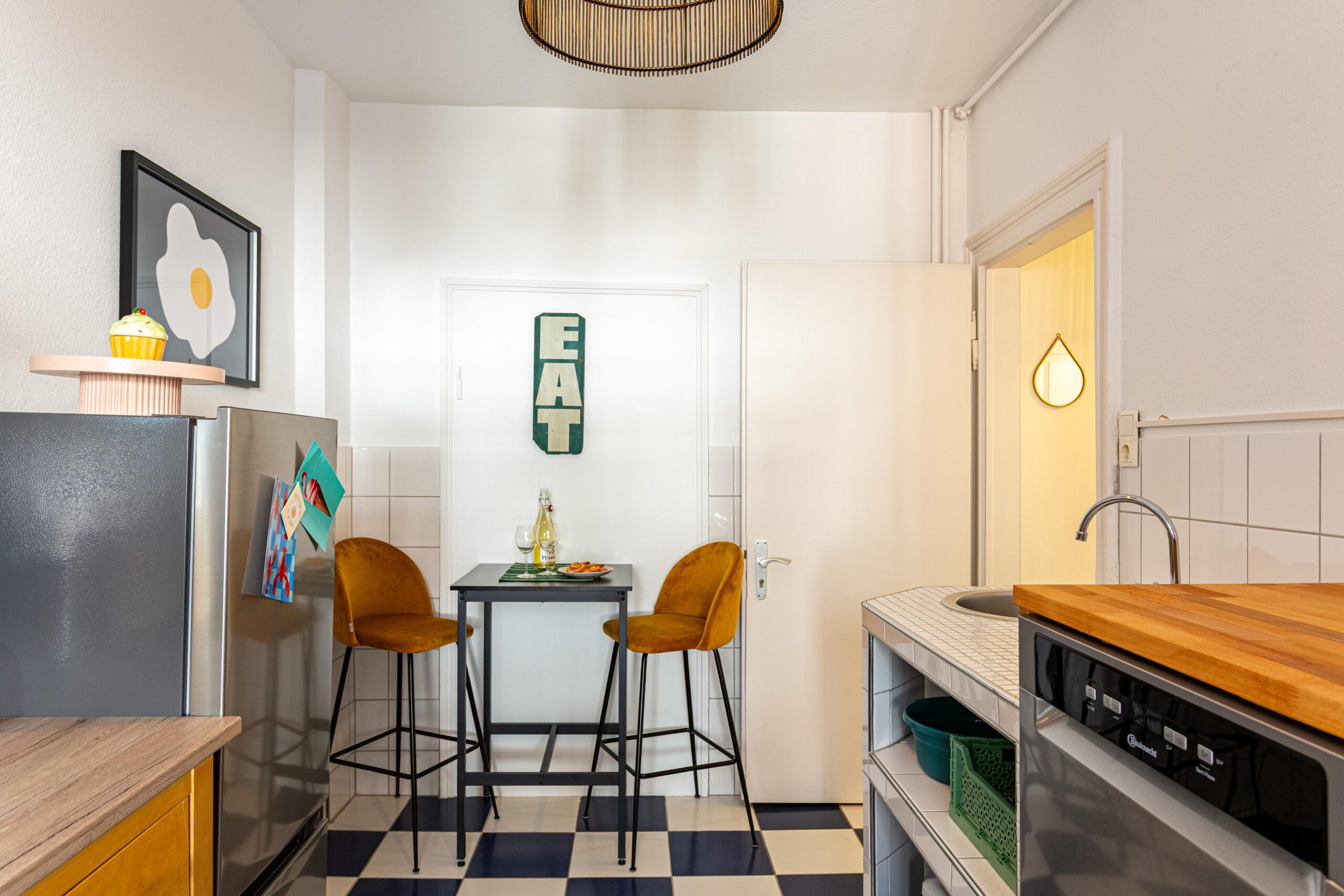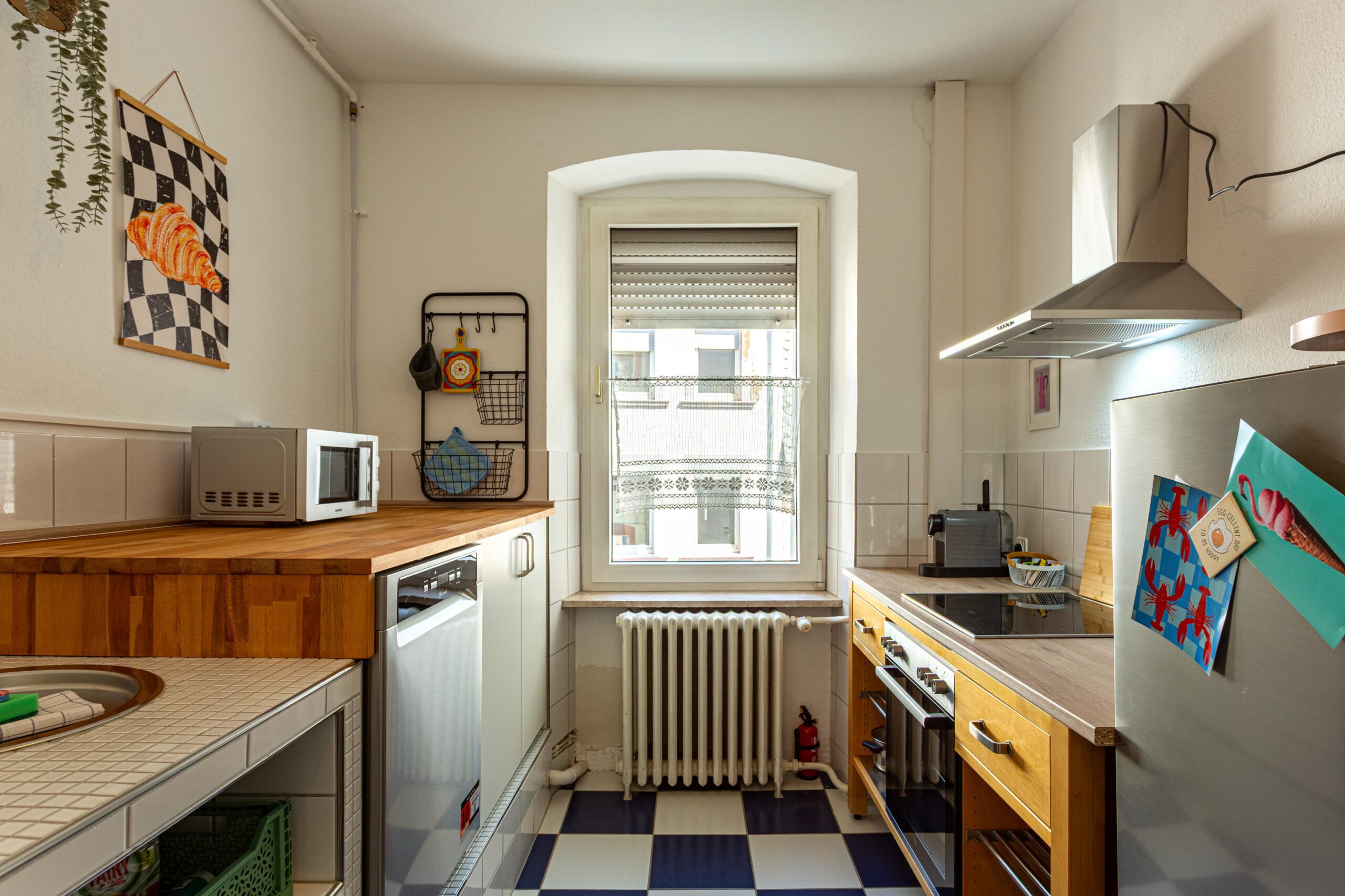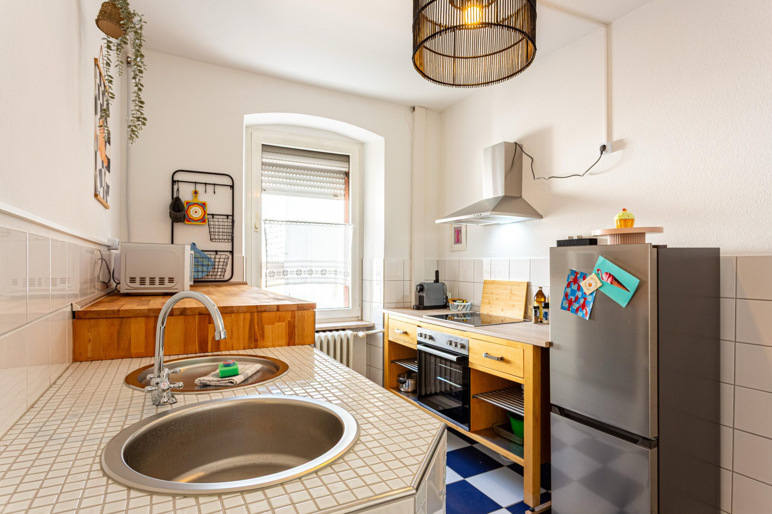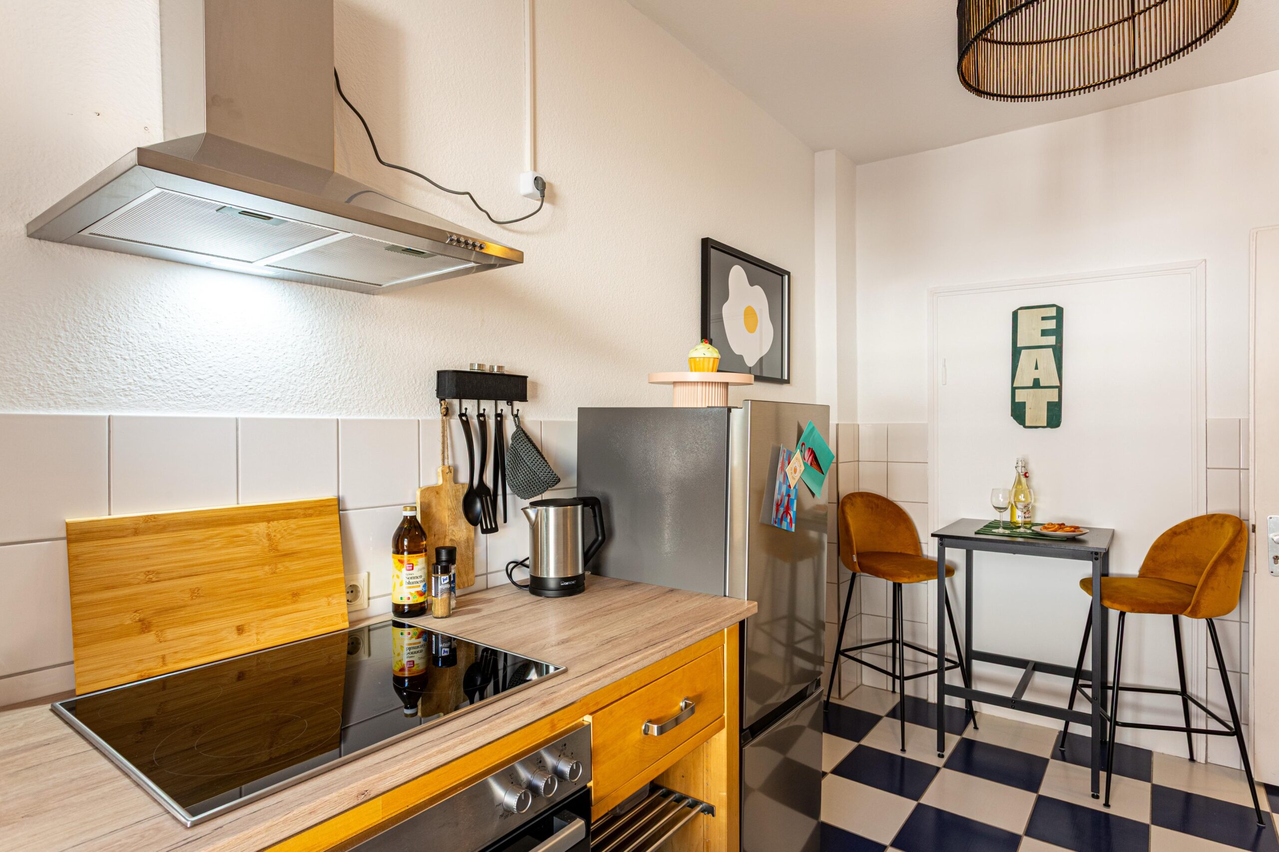 Diese Wohnung verbindet Komfort mit besonderen Akzenten – perfekt für Paare, kleine Familien oder Freundesgruppen. Das Herzstück ist die freistehende Badewanne, die zum Entspannen einlädt und dem Badezimmer eine luxuriöse Note verleiht. Die ausgefallene Küche begeistert mit ihrem einzigartigen Design und bietet Dir alles, was Du für gemeinsame Kochmomente benötigst.