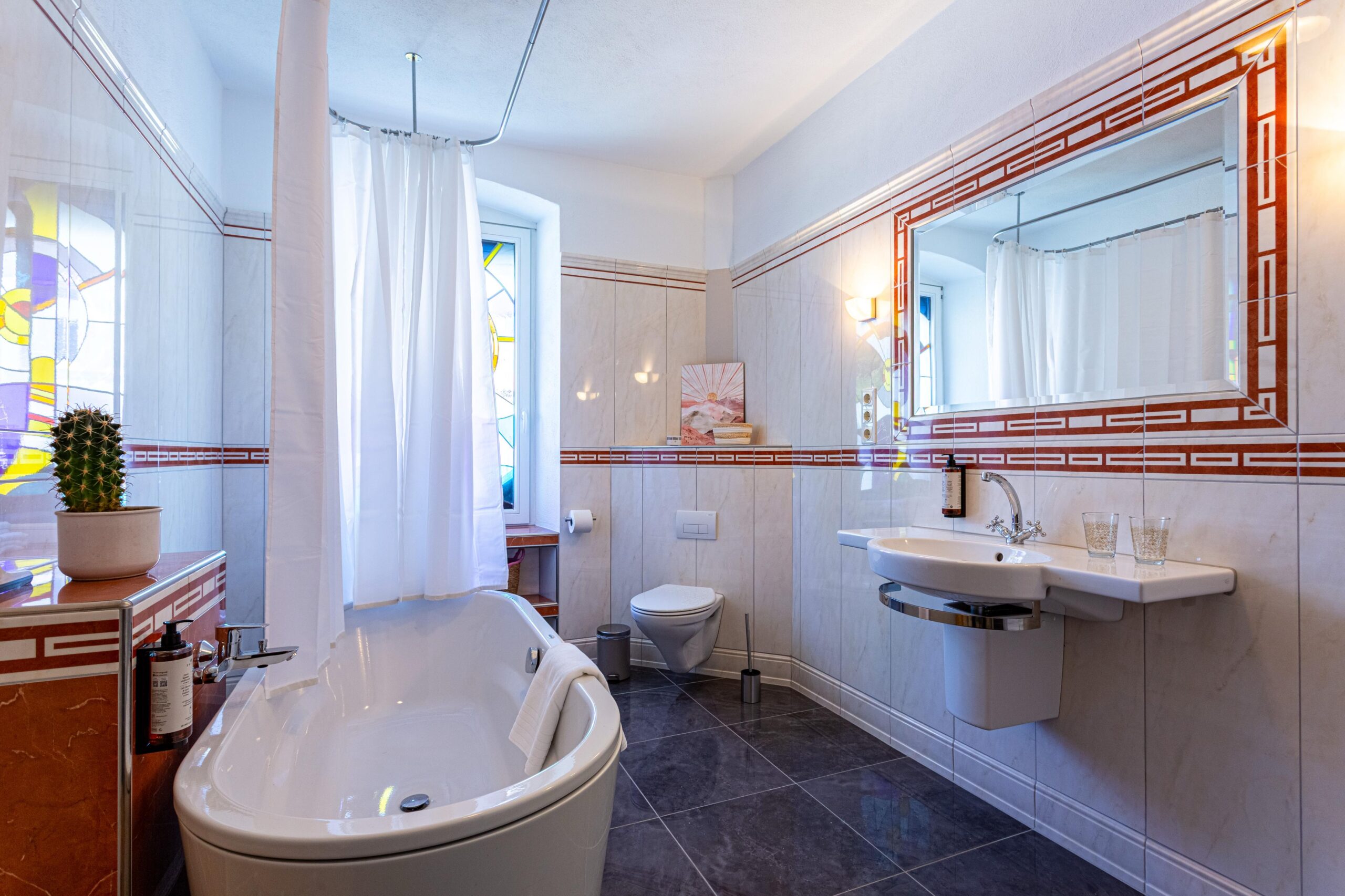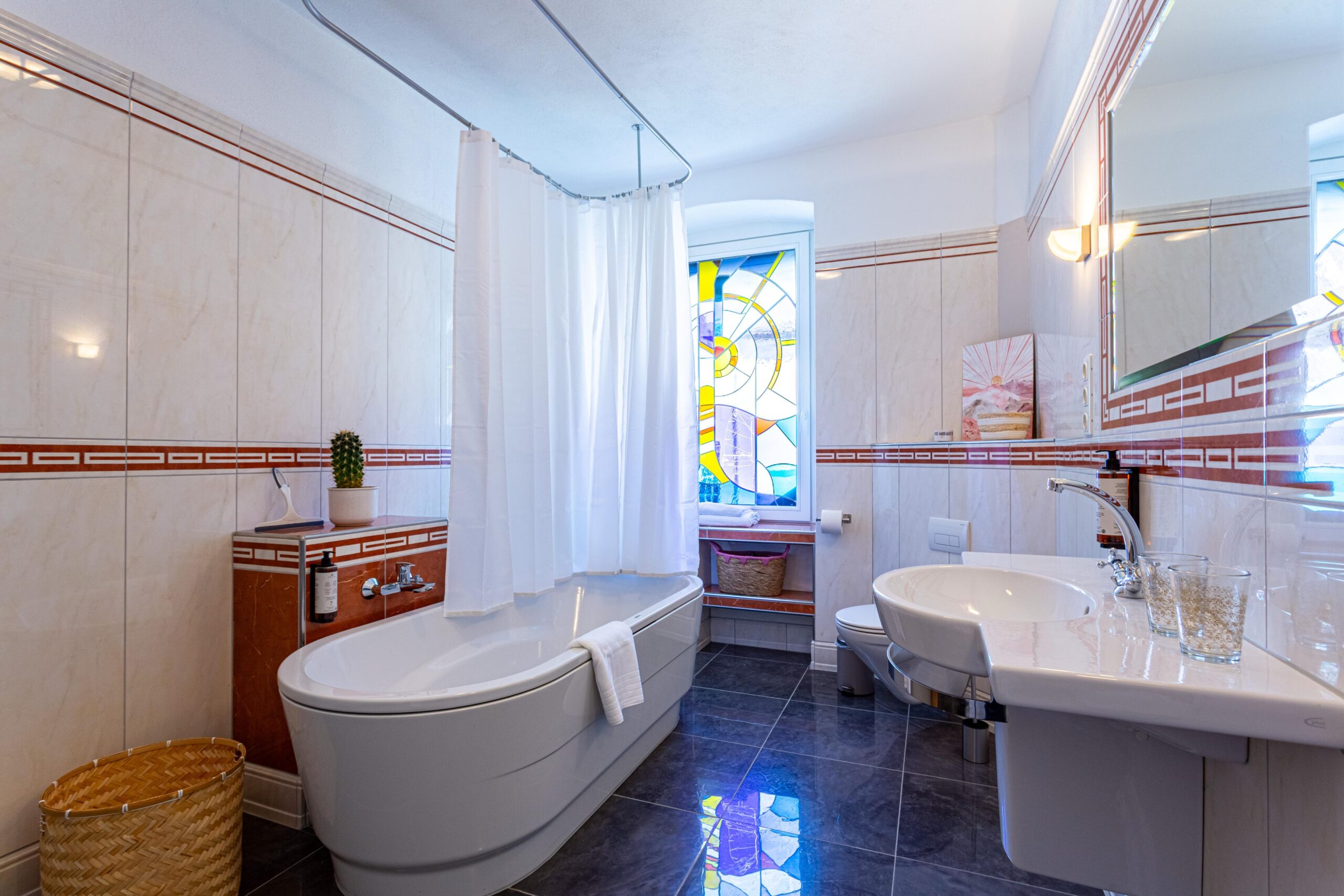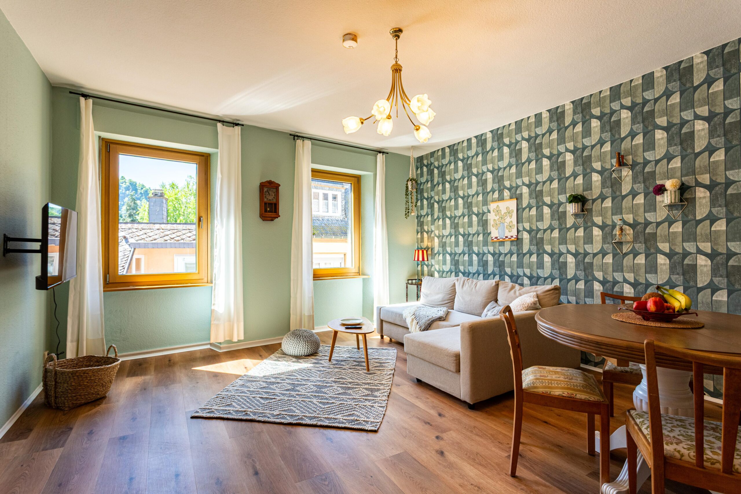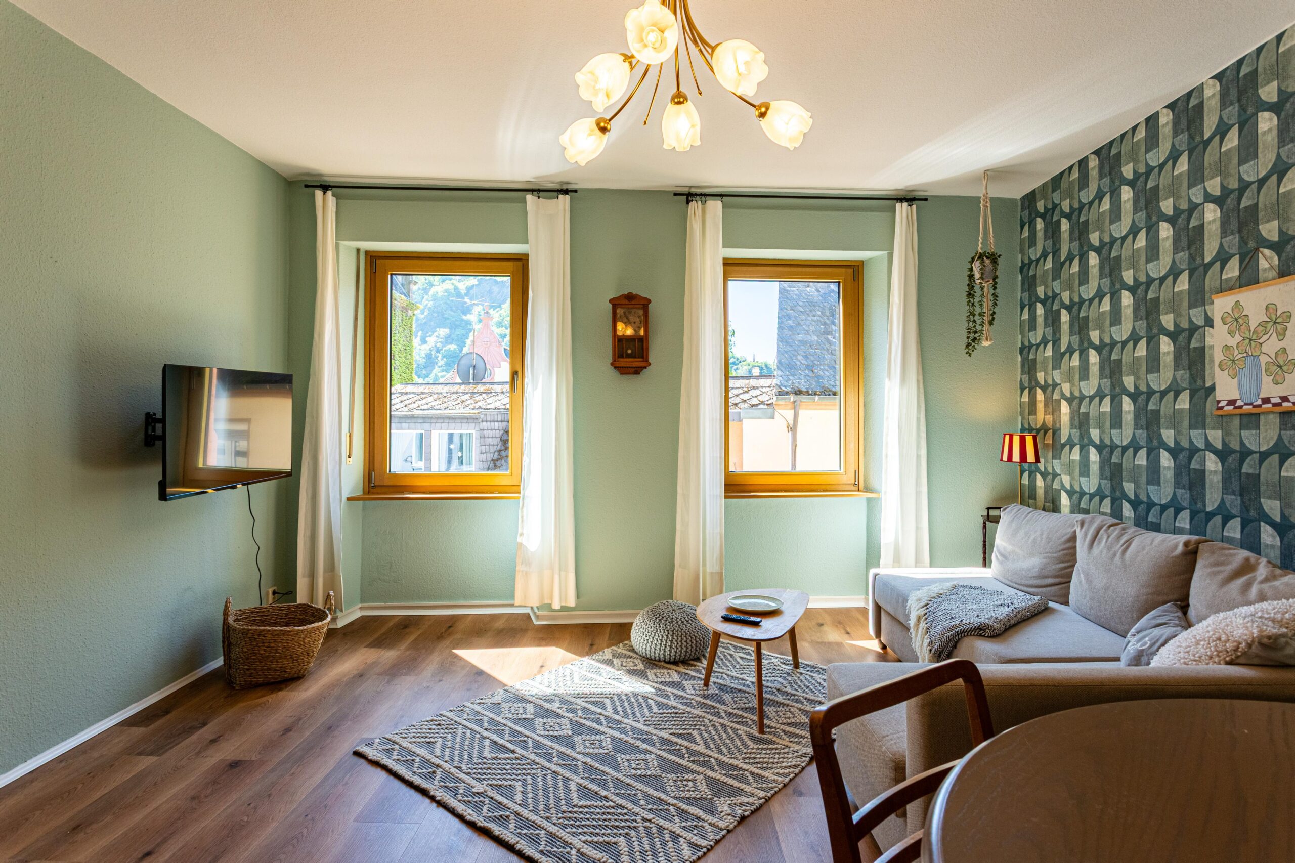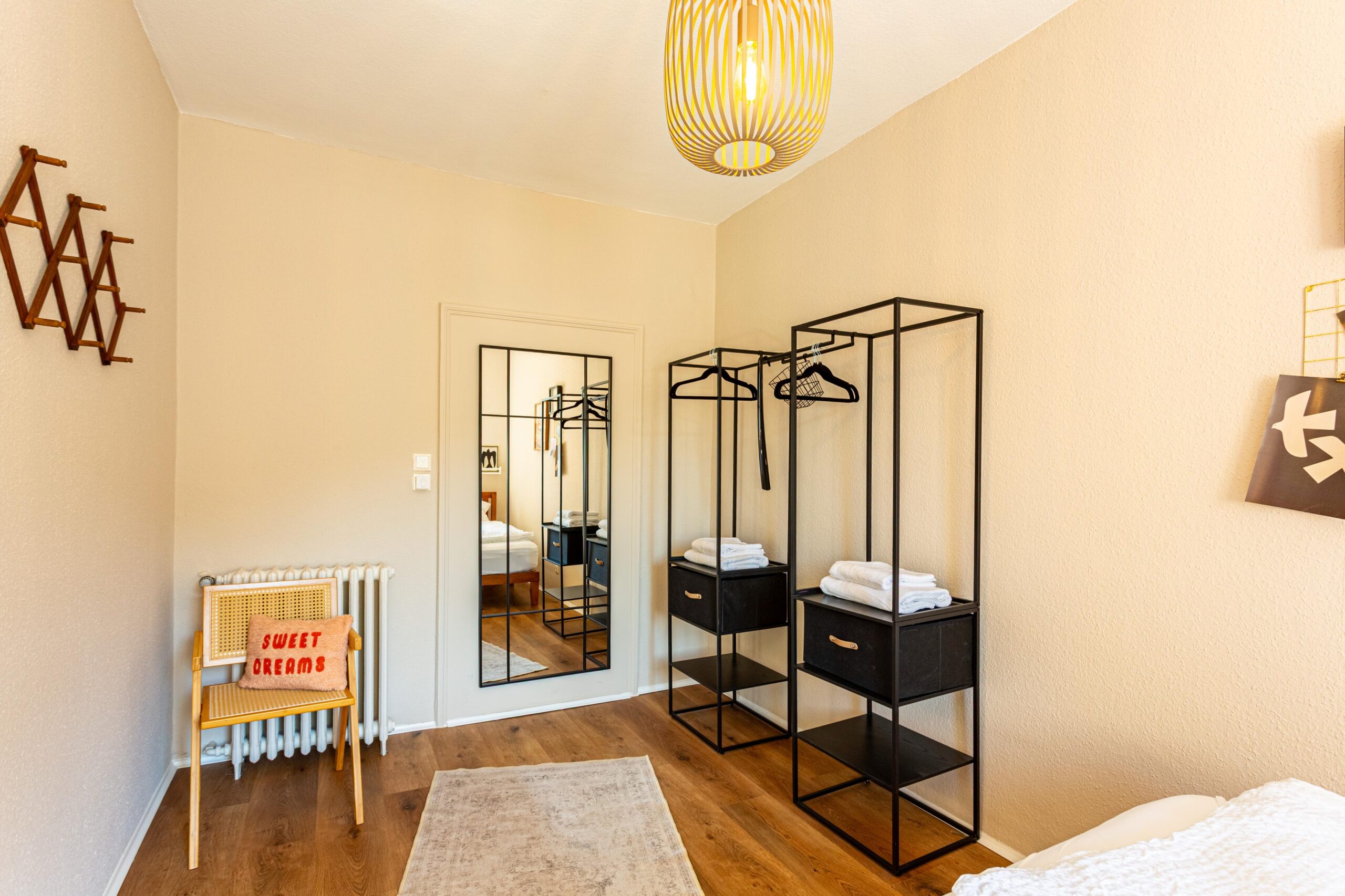 Diese Wohnung verbindet Komfort mit besonderen Akzenten – perfekt für Paare, kleine Familien oder Freundesgruppen. Das Herzstück ist die freistehende Badewanne, die zum Entspannen einlädt und dem Badezimmer eine luxuriöse Note verleiht. Die ausgefallene Küche begeistert mit ihrem einzigartigen Design und bietet Dir alles, was Du für gemeinsame Kochmomente benötigst.