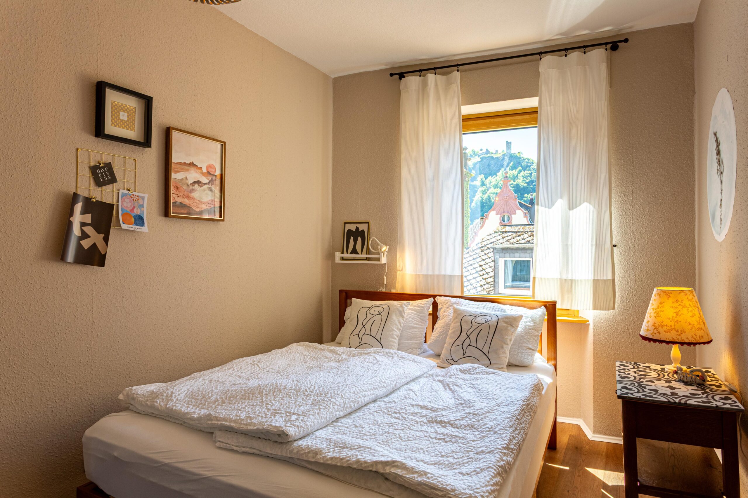 Die Wohnung bietet Platz für bis zu 4 Personen: ein Queensize-Bett im Schlafzimmer und eine Schlafcouch im Wohnzimmer.