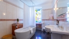 Diese Wohnung begeistert mit einer freistehenden Badewanne als Blickfang im modernen Bad – perfekt für entspannte Momente. Die ausgefallene Küche lädt mit ihrem besonderen Design zum gemeinsamen Kochen ein. Im separaten Schlafzimmer findest Du ein komfortables Queensize-Bett, während das Schlafsofa im Wohnzimmer zusätzlichen Raum für Mitreisende bietet.