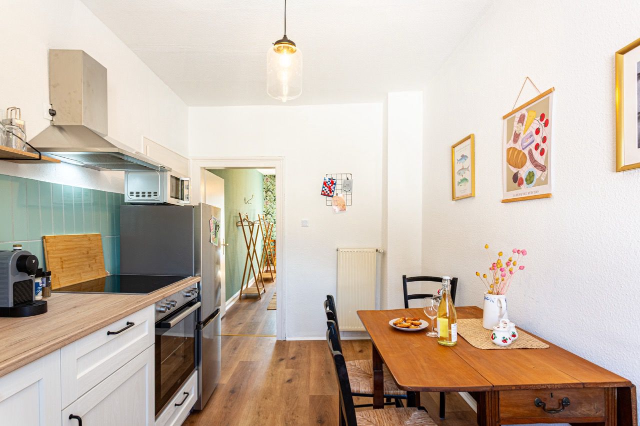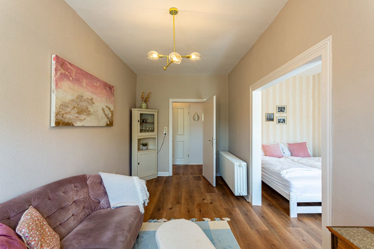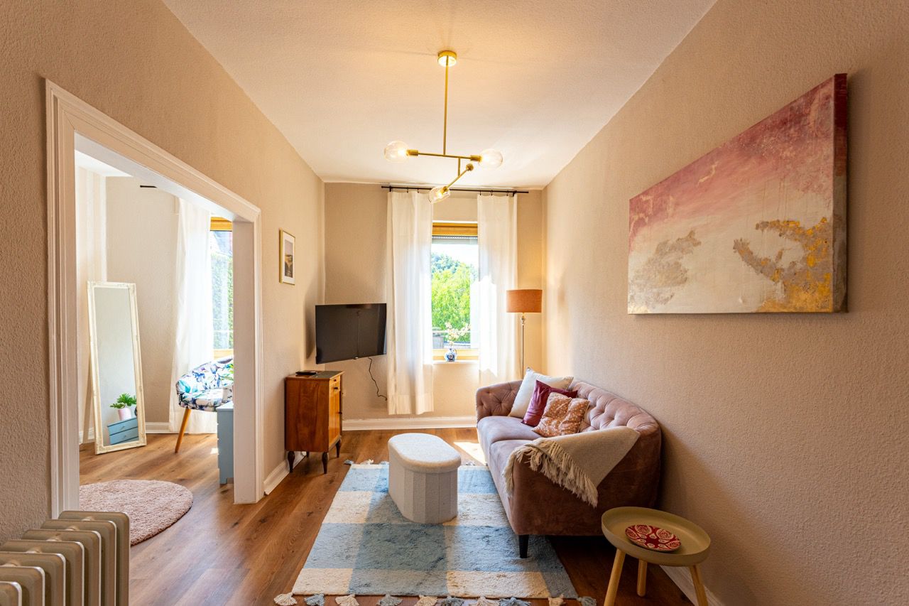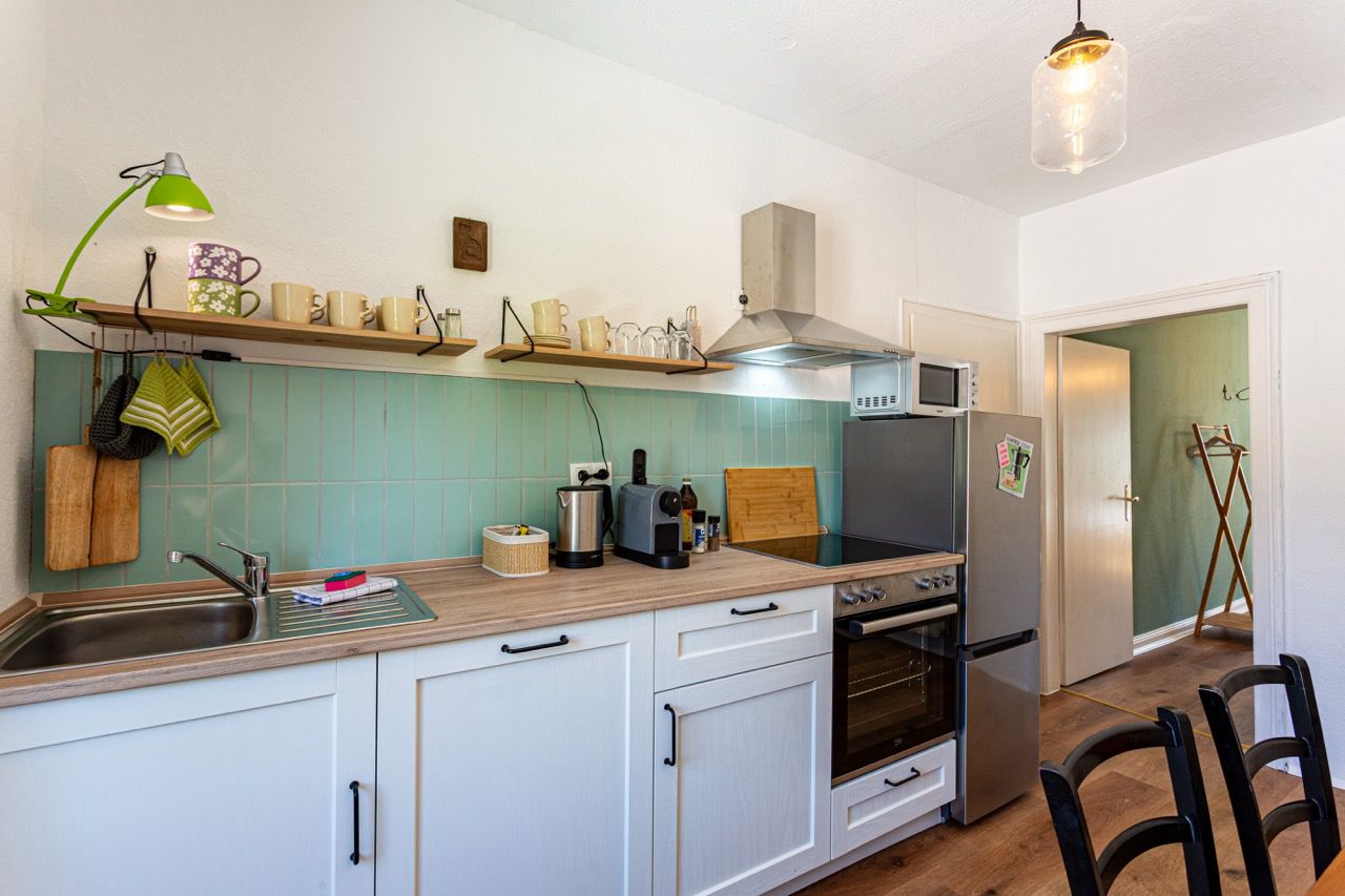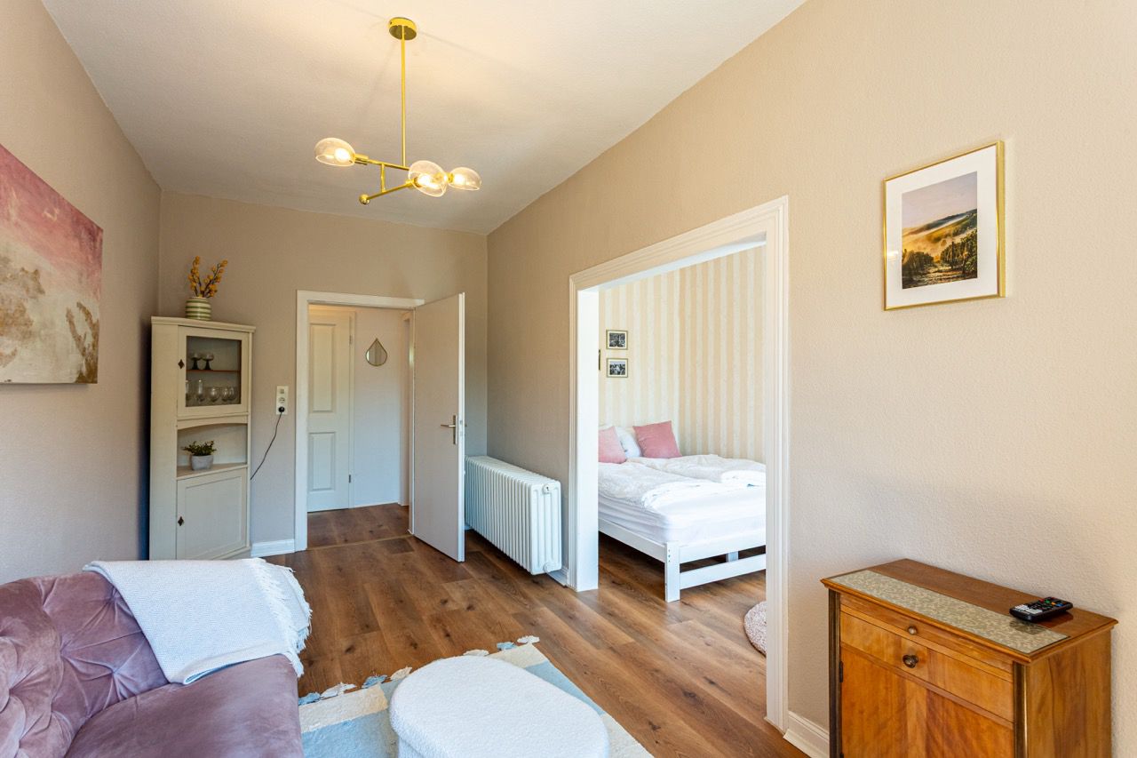 Die moderne, voll ausgestattete Küche lädt zum gemeinsamen Kochen ein, während das stilvolle Bad mit historischen Elementen für besondere Wohlfühlmomente sorgt. Im separaten Schlafzimmer findest Du erholsamen Schlaf, und das gemütliche Wohnzimmer bietet zusätzlichen Raum zum Entspannen.