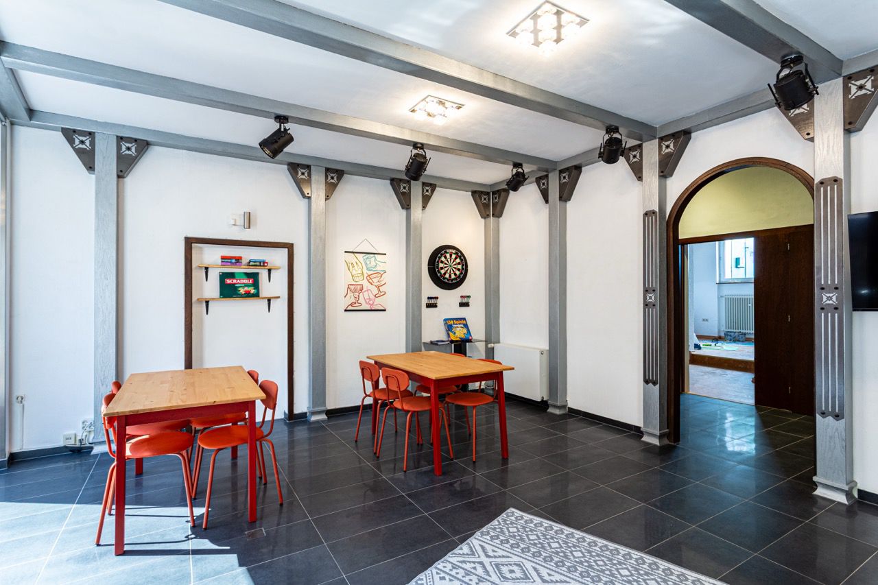 Zusätzlich stehen Dir im Haus ein Gemeinschaftsraum mit Dart und Spielen, ein Kinderspielzimmer sowie Waschmaschine und Trockner zur Mitbenutzung zur Verfügung. Ein Stellplatz kann auf Wunsch dazugebucht werden.